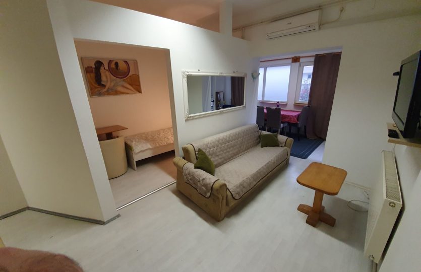 Stan za dvoje, namjesten i funkcionalan.Internet ukljucen kao i svi uređaji (lcd tv, klima, mikrovalna, perilica posuđa i veša, štednjak, hladnjak). Dvije odvojene spavaće sobe – ergonomski i kvalitetni kreveti i madraci Lokacija izvrsna. Nazovite za vise informacija.
