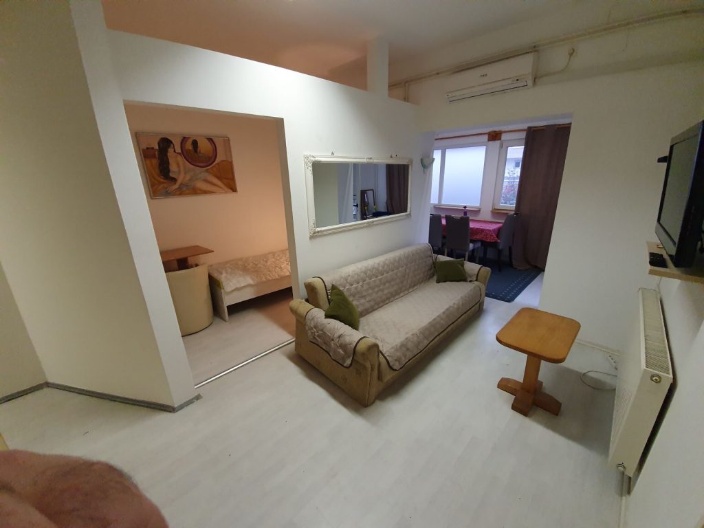 Stan za dvoje, namjesten i funkcionalan.Internet ukljucen kao i svi uređaji (lcd tv, klima, mikrovalna, perilica posuđa i veša, štednjak, hladnjak). Dvije odvojene spavaće sobe – ergonomski i kvalitetni kreveti i madraci Lokacija izvrsna. Nazovite za vise informacija.