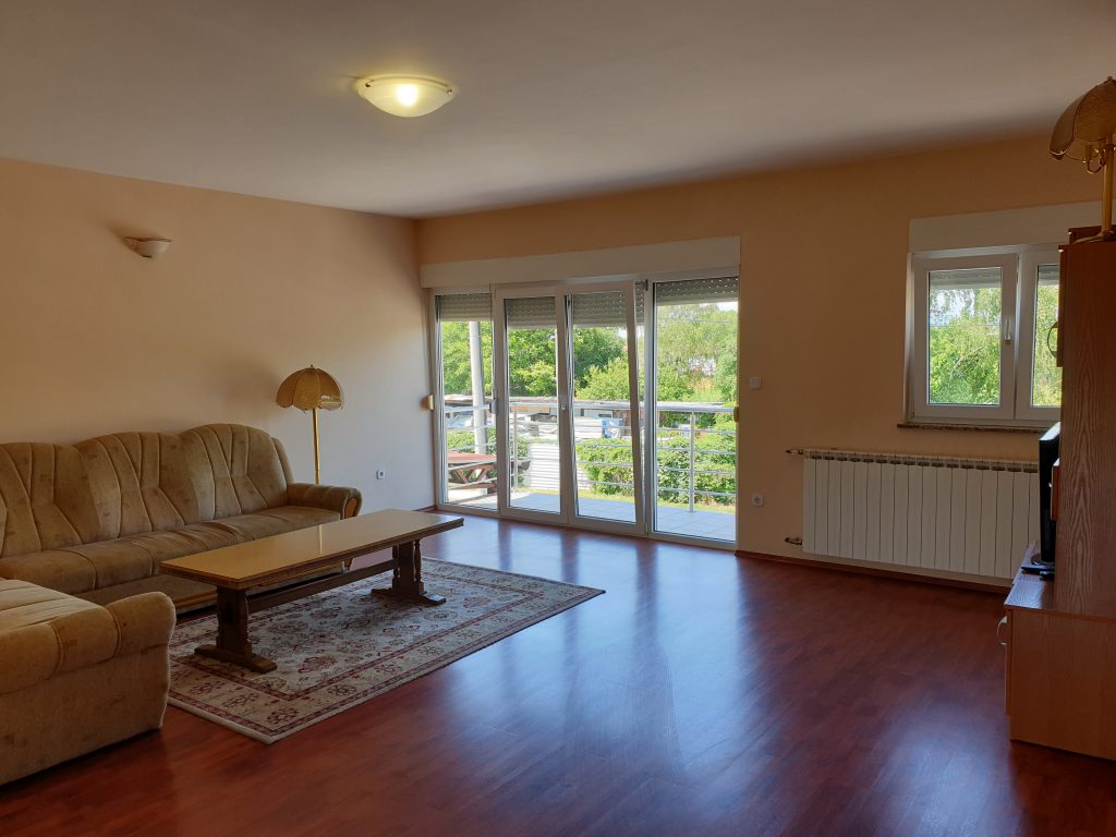 Iznajmljujem 4 sobni stan, s balkonom i terasom, sastoji se od open space dnevnog boravka, blagovaone, opremljene kuhinje, ostave, hodnika, kupaonice te dvije prostrane spavaće sobe. Stan je na prvom katu male stambene zgrade te ima raspoloživa parkirna mjesta u dvorištu. Nalazi se blizu autobusne stanice, želježničke stanice te udaljenosti 15 minuta pješke do tramvajske stanice. U blizini je vrtića, škole i trgovačkog centra Arena, kao i svih većih supermarketa. Kuhinja i kupaonica su nedavno zamijenjene- novi namještaj. Dodatno ili drugačije namještenje stana može se definirati u dogovoru s najmoprimcem. Nisu dozvoljeni kućni ljubimci kao ni pušenje u unutrašnjim prostorima (postoje 2 terase). U obzir dolazi samo dugoročni najam i uredni najmoprimci- u smislu čistoće i podmirenja obveza:).