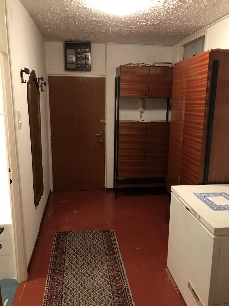 Stan se nalazi na devetom katu, površine je 55m2, ima hodnik, dnevni boravak, jednu sobu, kupaonu, kuhinju i balkon.
