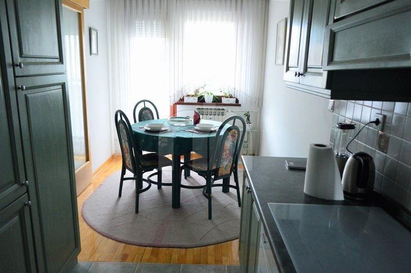 Daje se u najam kompletno namješten trosobni stan sa garažom na Trešnjevci kod tržnice. Stambene površina 83,00 m², 3-sobni (dnevni boravak, kuhinja sa blagovaonicom, dvije spavaće sobe, kupaonica, gostinski WC, ostava, dvije loggie). Stan se nalazi u urednoj novijoj stambenoj zgradi (1995. god) na 2. katu od ukupno 4 kata. Orijentacija stana je S/J, grijanje na toplanu, dodatno opremljen s 3 klima uređaja.
